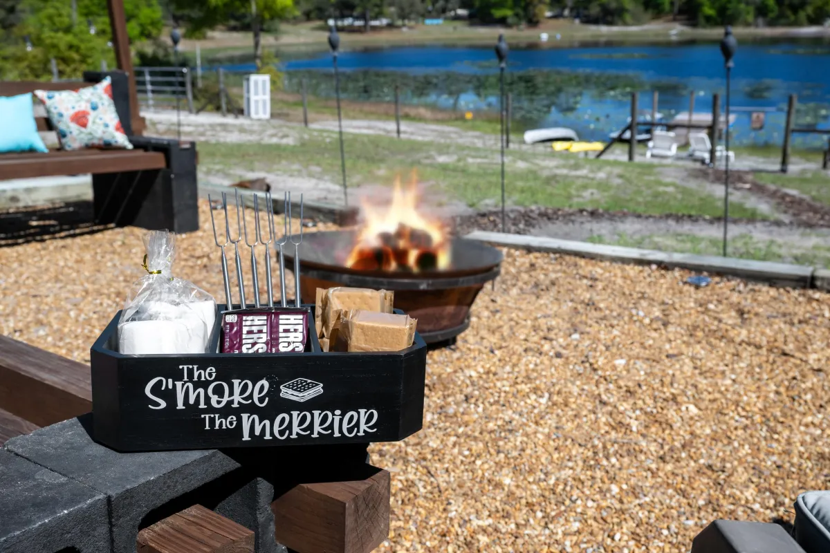 Enjoy evenings by the fire pit overlooking the serene lake, perfect for relaxation and gatherings under the stars.
